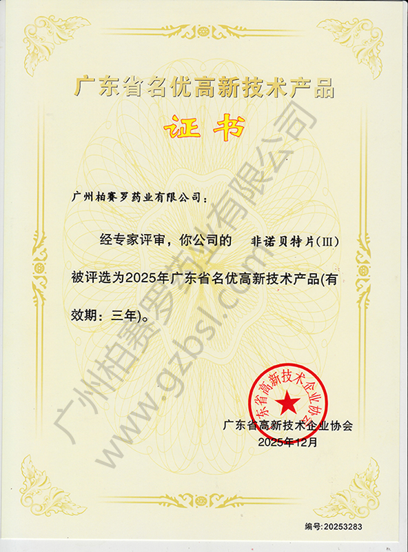 广州柏赛罗药业有限公司于1995年投资成立,属于国家高新技术企业、广东省守合同重信用企业,是一家台港澳合资有限责任公司,已通过新版GMP认证。